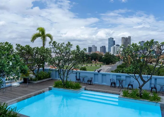 Das 4-Sterne-The Frangipani Living Arts Palace Hotel Phnom Penh bietet ein Restaurant und liegt im Viertel Daun Penh von Phnom Penh, 350 Meter vom Wat Ounalom Tempel und etwa 15 Fußminuten vom Zentralmarkt entfernt. WLAN im ganzen Gebäude ist ebenfalls verfügbar.